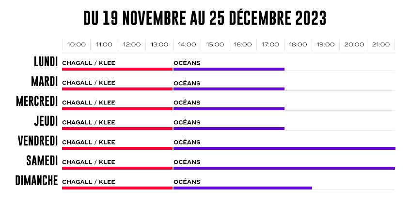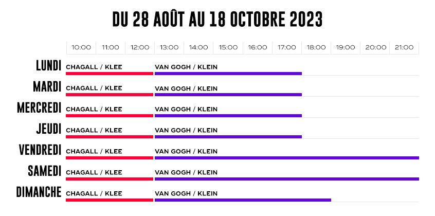 10:00 - 18:00- Dernier créneau 1h15 avant la fermeture du site.